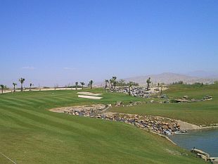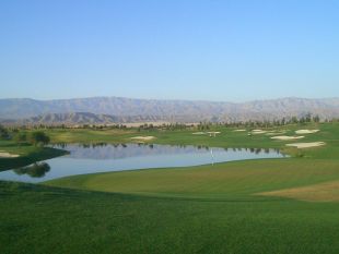 ニック・ファルド設計で、難しさ、美しさ、コンディションのよさを誇るパームスプリングスでも屈指の好コース!大きな池や深いバンカー、強い風が立ちはだかる!
