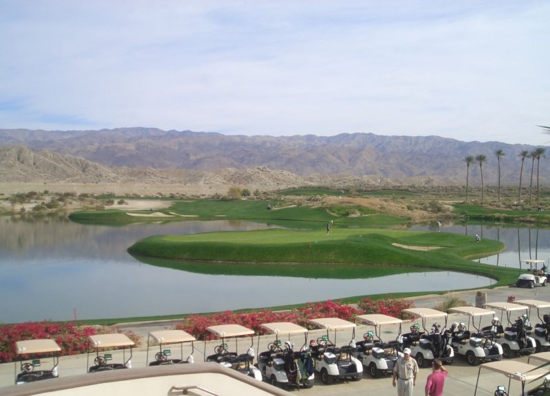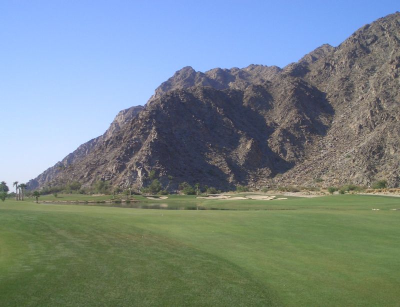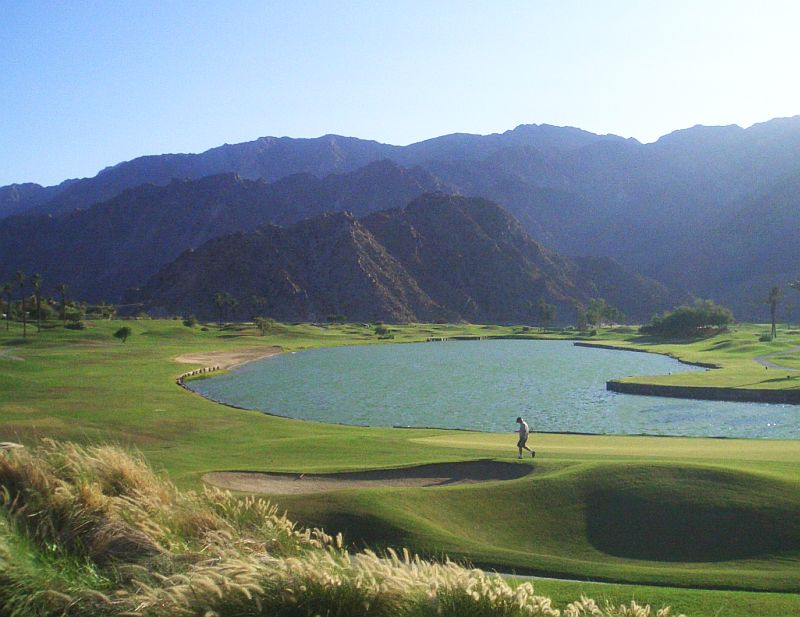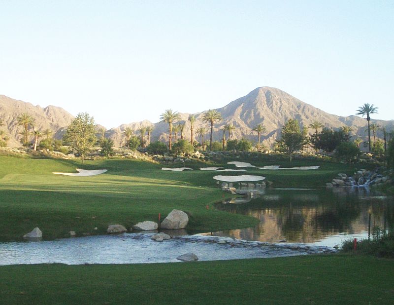 2005年にオープンしたアーノルド・パーマー設計のリゾートコースで、毎年パームスプリングスで行われるボブ・ホープ・クラシックの舞台のひとつでもあります。フルバックからはなんと7553ヤードもあります。12番ロングなどは658ヤード。アマチュアではちょっと歯が立ちません。