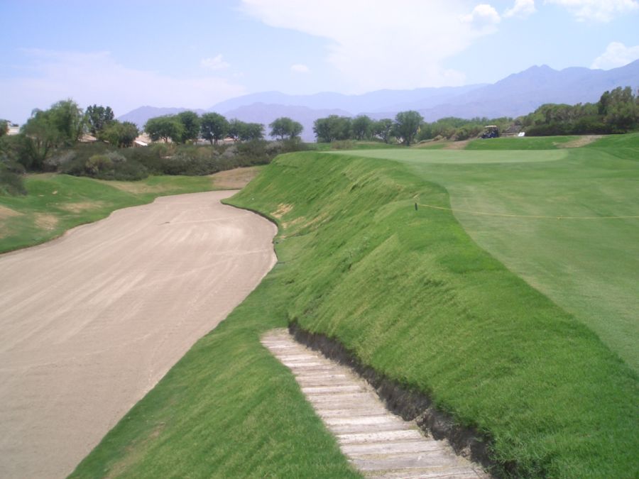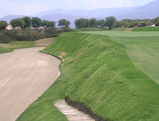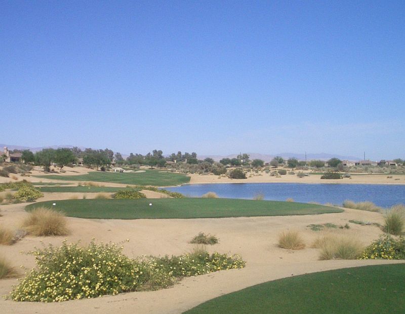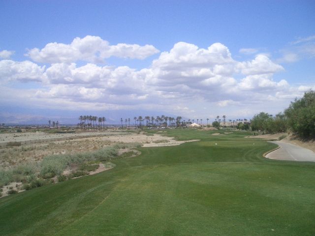 ほぼ平坦なコースですが、非常にワイルドなコースで、スコティッシュ・リンクスを想起させます。パームスプリングスにありがちな、コースの周りに開発された住宅なども一切ありません。またパームスプリングスでも最も強い風が吹くエリアにあり、秒速30メートル以上の風が吹くときもあります。そうなるとクラブ選択が非常に難しくなりますし、アゲンストの場合は打っても打っても届かないほど距離をロスしてしまいます。1995年にUSオープンの予選をやったときは二日間の最高スコアが10オーバーだったそうです。