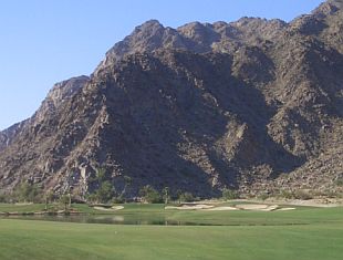 岩山の麓の平地にデザインされています。アーノルド・パーマー設計らしく、あまりトリッキーなホールはありませんが、パームスプリングスらしく、随所に大きなバンカー、池、クリークが待ち受け、とても面白いレイアウトになっています。