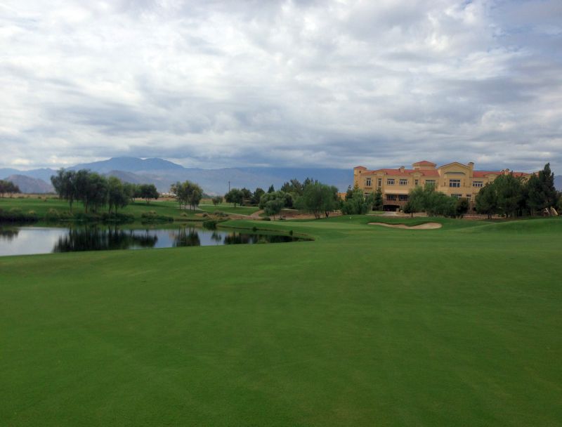 プレーフィーは5月のトワイライト(午後3時以降)で40ドルと非常にお得です。遠いのさえ我慢すれば非常にコストパフォーマンスは高いです。今回は予想最高気温は華氏101度でしたが、午後3時半すぎのラウンドでは暑さもほとんど問題とならない程度で、やはり5月のパームスプリングスはお値打ちだと実感しました。練習場も打ち放題。パームスプリングスの外れにあるためかあまりプレーしている人もおらず、3時間50分でラウンドできました。クラブハウスも立派です。ただし午後6時くらいにはクローズになってしまうようです。