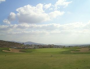 ほとんどメキシコ国境に近い山野に造られたコース。フルバックからは6855ヤード。樹木はほとんどなく、なだらかな傾斜地にレイアウトされています。コース内にウォーター・ハザードは全くないのですが、各ホールの両サイドに赤杭のワンペナゾーンが多数設置されています。またフェアウェイが右から左、左から右に傾斜しているホールが多く、下がっているサイドに打つと転がってワンペナゾーンまで行ってしまうことがあります(フェアウェイの芝も短く刈られており、ランが非常に出やすいせいもある)。全体のイメージはミッション・ビエホのArroyo