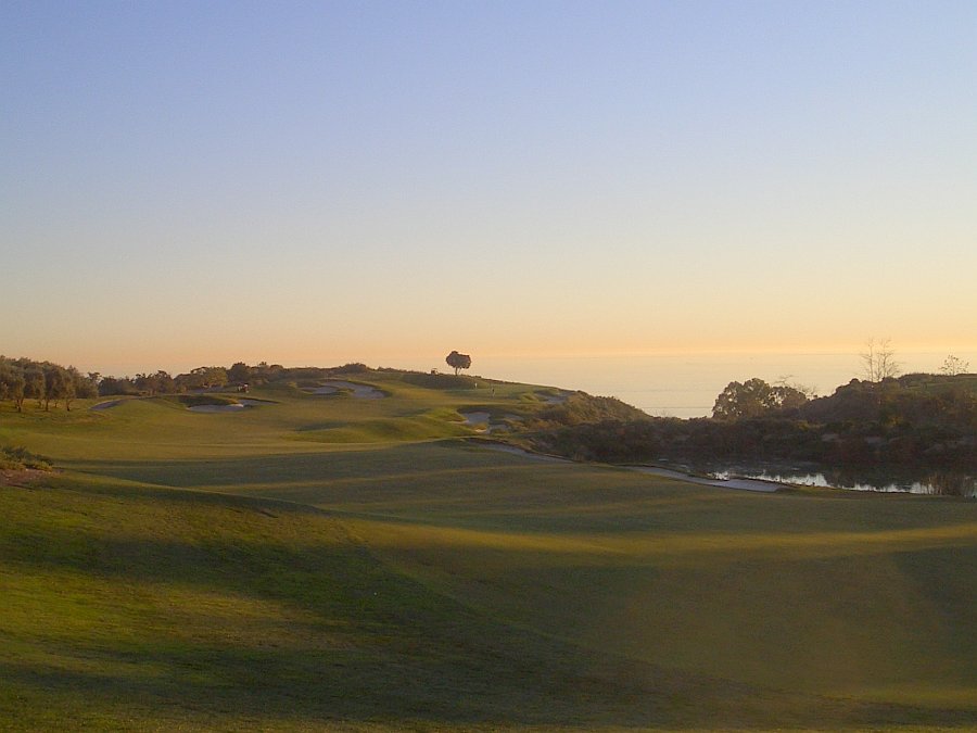 フルバックで6945ヤード(73.3/133)、ブルーで6563ヤード(71.7/129)、ホワイトで6270ヤード(69.7/124)です。ニューポートコーストの海を見晴らす丘の上にレイアウトされています。海に接したホールはありませんが、全体的に標高が高いので、ほとんどのホールから海が見渡せます。17番ロングホールのグリーンからの眺めは絶景で、太平洋やカタリナ諸島を見渡すことができます。我々はトワイライトでプレーしたので、ちょうどカタリナ諸島に沈むサンセットを見ることができました。