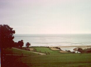 適度な起伏を持った丘陵地帯に非常に余裕を持ってレイアウトされ、OCあたりのコースと違って、コースを取り囲む住宅なんてものはありません。池、クリーク、大きな木などが巧妙に配置され、精密なゲームプランが要求されます。たとえ会心のショットを放っても距離が出過ぎたりするとセカンドショットが狙いにくくなるなど全く気が抜けません。フェアウェイは決して狭いわけではありませんが、曲げてしまうとスコアになりません。それに地形上、常にかなり強く海からの風が吹きます。短いショートでも距離の計算がたちにくいです。